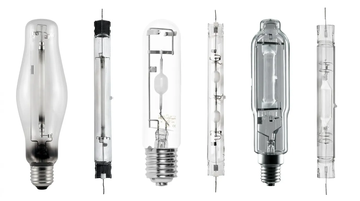 Die am häufigsten für Pflanzenbeleuchtung verwendeten HID-Lampen sind High Pressure Sodium (HPS) [zu deutsch: Natriumdampf-Hochdrucklampen bzw. NDL], Metal Halide (MH) [zu deutsch: Metall-Halogen] und Ceramic Metal Halide (CMH) [zu deutsch: Keramik-Metall-Halogen]. Sie sind mit zwei verschiedenen Anschlussarten erhältlich: mit Schraubfassung (z. B. E40) oder mit beidseitigem Anschluss (Double-Ended). Die Anschlussart spielt für die Auswahl der Lichtquellen-Einstellung keine Rolle.